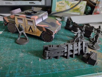 Doch was wäre eine Zombie Invasion ohne einen echten Humvee. Also gleich mal im Netz danach gesucht und auch das passende gefunden. Um dem ganzen etwas Gewicht zu geben. Habe ich meine bisherigen Modelle sowie jetzt den Humvee mit Stahl Unterlegscheiben ausgestattet. Das bringt nicht nur das passende Gewicht mit sich sondern auch,das die Untoten sich die Zähne an ihm ausbeisen.